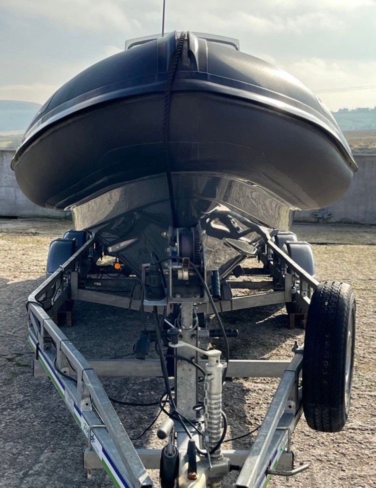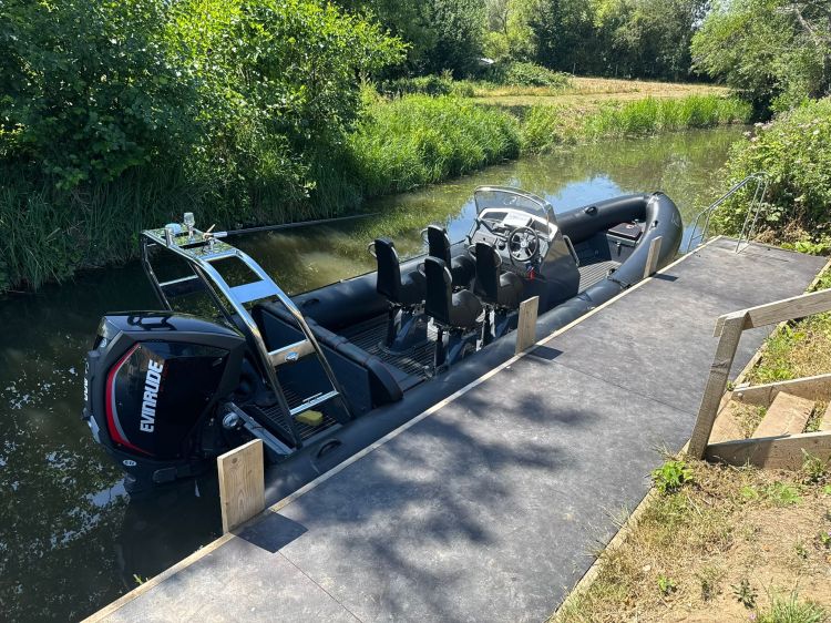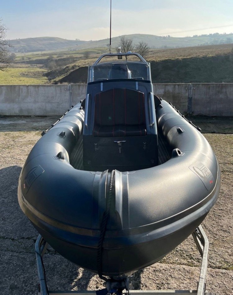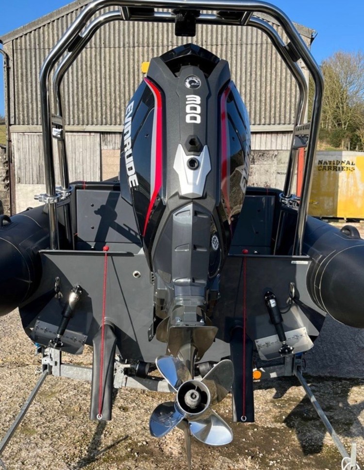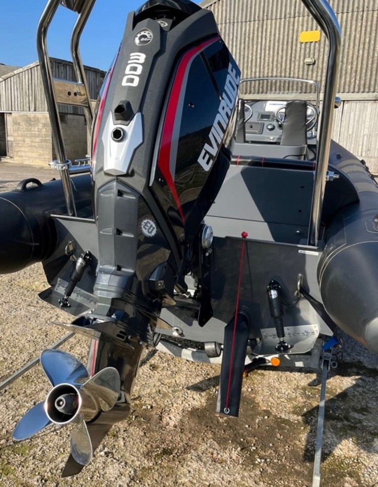 Osprey Vipermax 8.0, 2017, Evinrude E-Tec 300 hp. This is a fantastic opportunity to acquire what is an awesome RIB setup. The impressive spec includes; Seasports console with 60 mm lift, under-deck tank, 4 Ullman suspension seats costing nearly £12,000, Seat covers, LED floodlight, Removable bench seat with backrest, Glove box, GPS chart plotter, DSC VHF, Road trailer and more.
