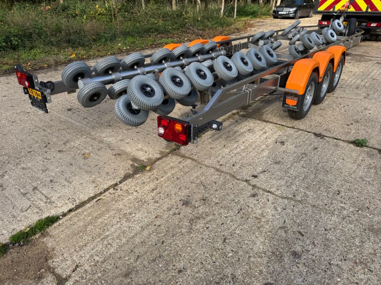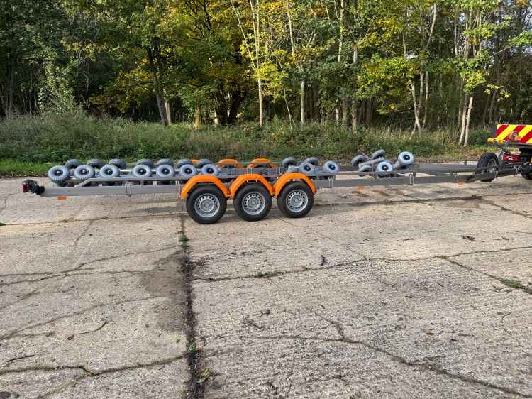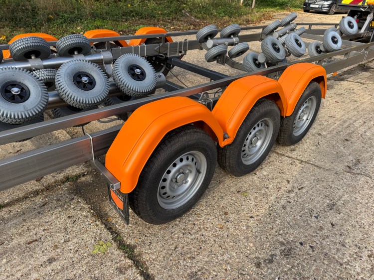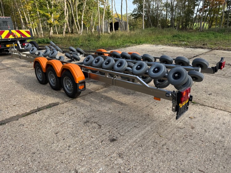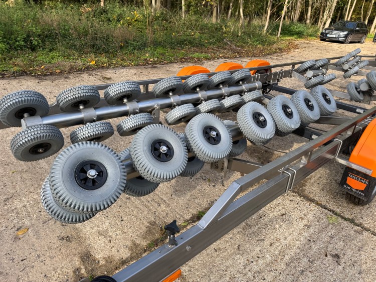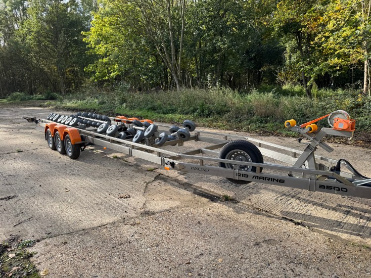 Vanclaes RIB Marine GYRO 3 axle Boat Trailer. Made from Stainless Steel and fitted with Vanclaes’ GYRO roller system this trailer is the the pinnacle of boat trailers and is a very impressive piece of kit. The trailer was bought new for an intended RIB purchase, but the boat was never bought so this trailer has been stored and not used, so it is as new! With a retail price of over £14,000 the is a fantastic opportunity to make a huge saving and acquire a trailer that will be an envy at the slipway.